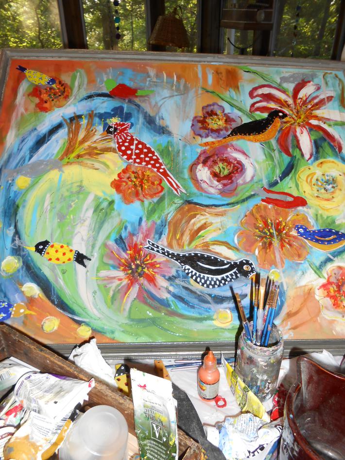 I loved painting the Chartreuse & Red Orange colors in this painting! And of course the Cobalt Blue is a favorite! |